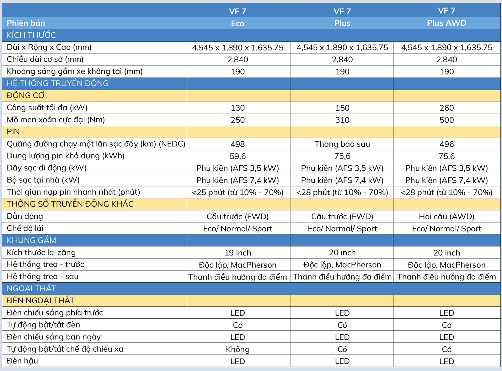 - Dung lượng pin khả dụng (kWh: 59,6 (Eco) | 70,8 (Plus)